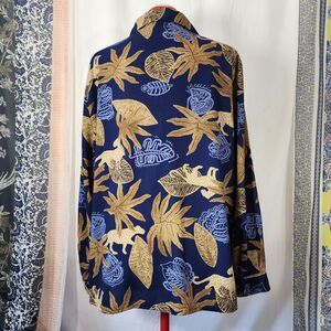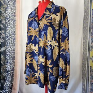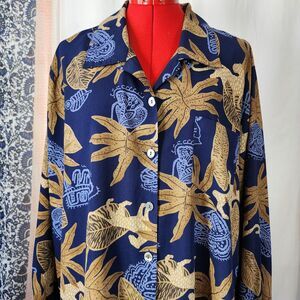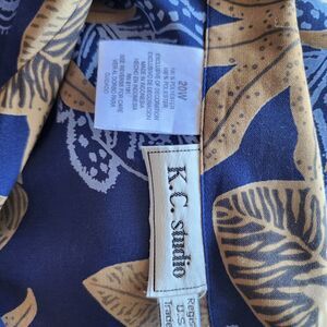 K.C. STUDIO Blue Brown Button Up Long Sleeve Blouse Size 20W