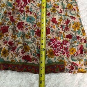 KC Signatures Women L Colorful Silk Crochet Hippie Bohemian Festival Henley Top