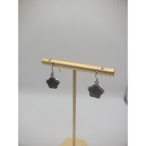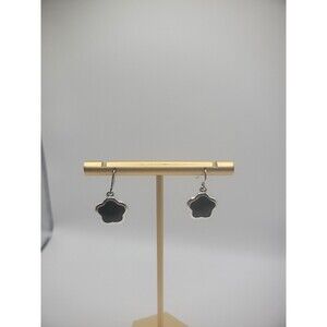 KC Silver Tone Hook Dangle Drop Earrins Pierced Clover Black Jewelry Costume