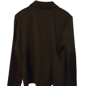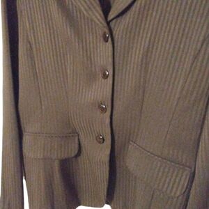 This item is a beautiful K.C. Spencer New York Collection Suit Blazer. It is a deep, rich brown (looks almost black) with a pinstripe design. Machine washable and in very good condition. This suit jacket is a great versatile piece-pair with jeans for a casual fashion statement or pair it with a business casual piece like dress slacks or skirt for office wear!