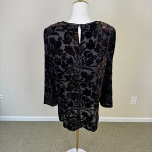 KC Spencer New York Floral Long Sleeve Velvet TOP US Women's 14 Plus