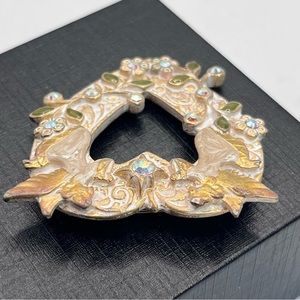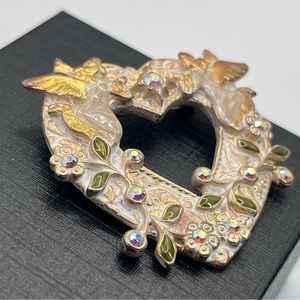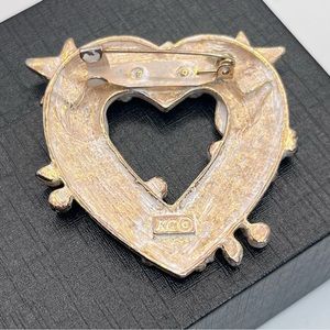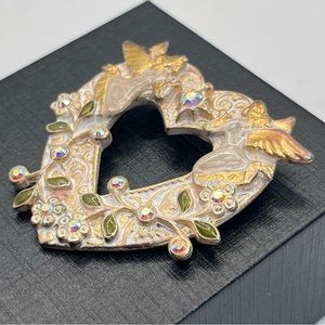 KC VTG 50's Angel Heart AB Enamel Brooch Pin 1.75"