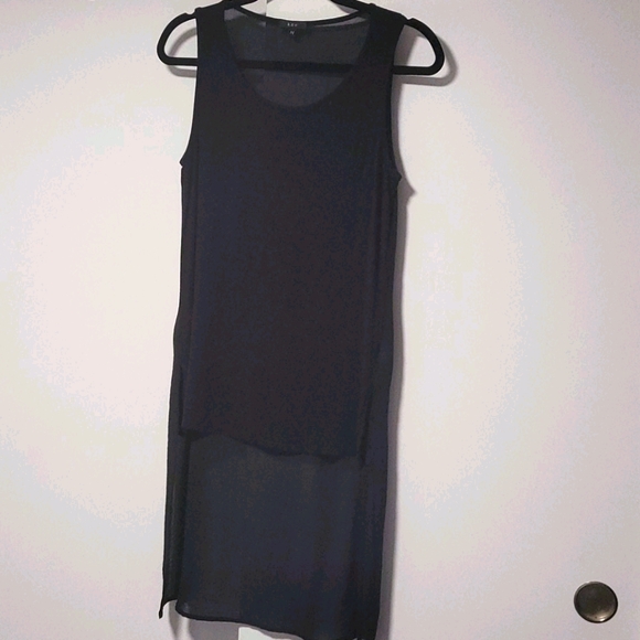 Black tank mixed material hi low tunic top