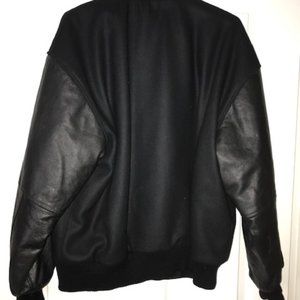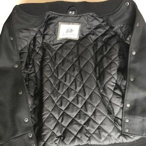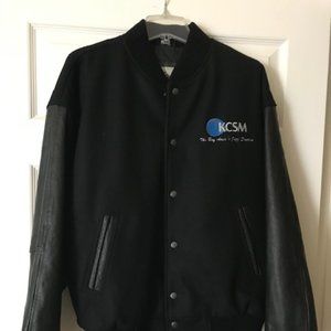 KCSM Jazz 91 Logo stadium varsity bomber style jacket, black; wool blend & leather. Condition is New w/out tags. Show support for your favorite Bay Area Jazz station with this original, quality logo jacket. Size says medium but it seems more like large. I'm happy to provide measurements.