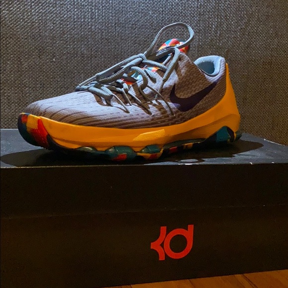 Gray and vibrant gold KD that’s fairly new and barely worn. Its a 6.5 in boys with intricate designs on the side as well as the front . Smoke free eat free home.