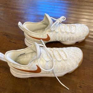 Stylish Nike athletic shoes. White upper with orange accents. Comfortable and durable design. Open to offers!
