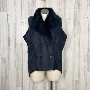 K-DASH by Kardashian Faux Fur Vest Black Double Breasted Neutral Casual Size 1X