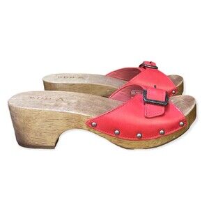 KDB Kelsi Dagger Brooklyn Red-Orange Wood Clogs Size 7 Excellent Condition