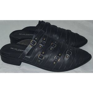 KDB ∆ Kelsi Dagger Womens Leather Slides, Black, Size 7.5