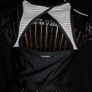 K-Deer shimmering black full front racer back with white see thru sections. I never wore it. Reposhing @makenuppie.