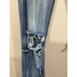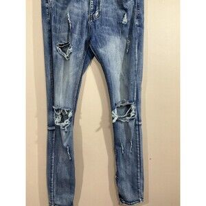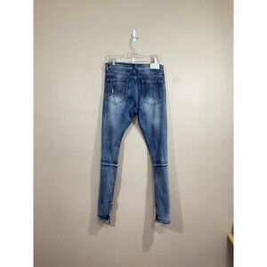KDNK Mens Distressed Skinny Jeans 34 x 32 (Actual 33 x 32) Blue Ankle Zip Rock