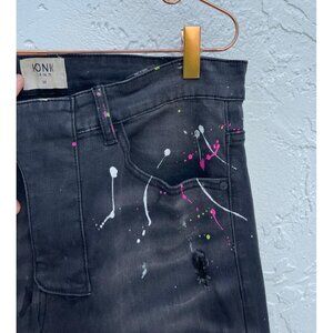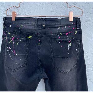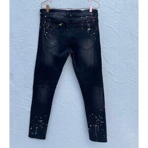 KDNK Mens Paint Splashed Distressed Tapered Denim Jeans Black Sz 32