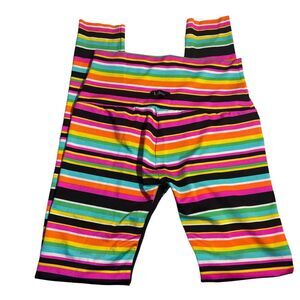 K-Deer Leggings Women's Large Colorful Striped Skinny Ankle High Rise Athleisure