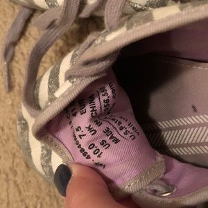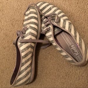 Very cute & comfy Keds! The size is a women’s 10, not a 5 like it says on the bottom of the shoes! The bottom of the shoes are just dirty, not too worn down. I’m a size 9 and these shoes comfortably fit me.