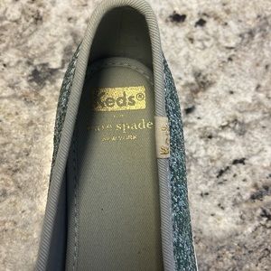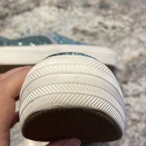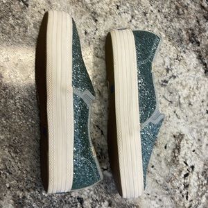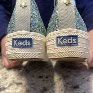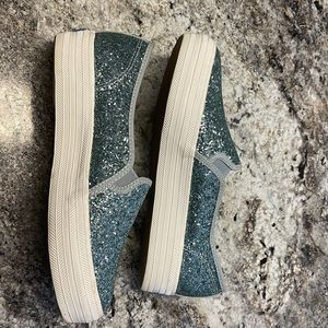These adorable sky blue Keds by Kate Spade are just the cutest! My daughter got compliments where ever she went! Shes grown out of them and it’s your turn to sparkle! I don’t know how but this glitter doesn’t flake off! They look great with any casual wear! Size 7 M. Not for you if you have wide feet.