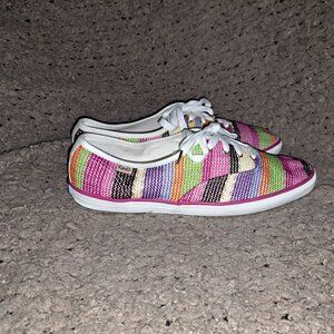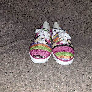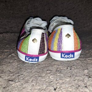 This product is a pair of KEDS by Kate Spade crochet multicolor sneakers in size 9.5.