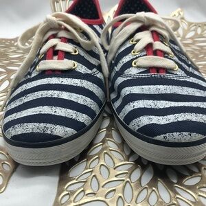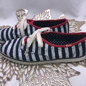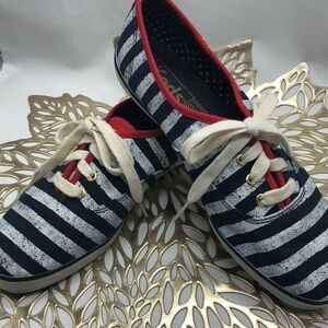 KEDS Navy and White Striped with Red Pipping Lightweight Sneakers Size 5.5