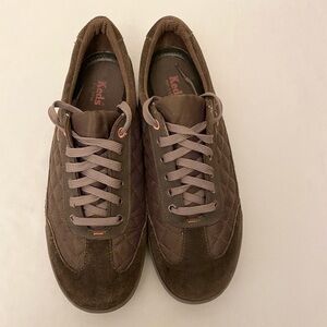KEDS Quilted With Suede Trim Preowned Sneakers Shoes With Arch Support Brown Size 10. Lightly worn with some light rubbing at the openings, see photo. These are really nice looking shoes you will want to wear all the time! SO 5