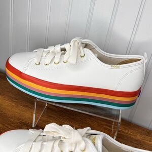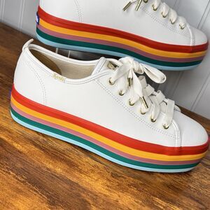KEDS Sz 9 Triple Up Leather Platform Sneakers Rainbow White Multicolor Y2K Retro