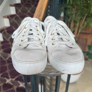 KEDS ladies JUMPKICK perforated low top sneaker, beige/suede item number, WH65063 size 9.5 very good condition lace up
