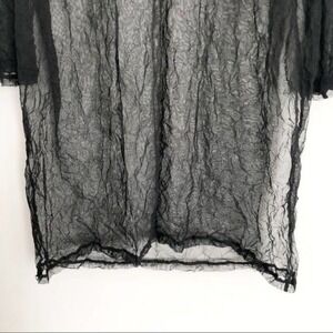 Features: black, sheer, long sleeved, wide v neck, crinkle pattern, made of microfiber