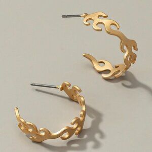 Fire pattern small hoop earrings. Made of iron with matte gold plating.