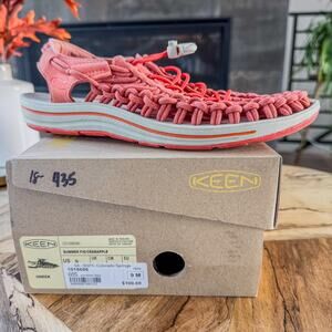KEEN Uneek Slice Fade Two Cord Adjustable Fit Sandals, Summer Fig/Crabapple, 9