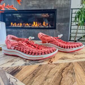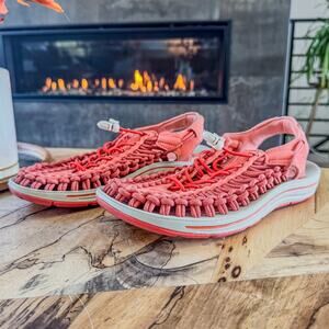KEEN Uneek Slice Fade Two Cord Adjustable Fit Sandals, Summer Fig/Crabapple Color