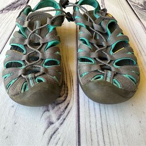 KEEN Whisper Hiking Water Sandals Grey/Peacock Green Bungee Lace Women's Size 7