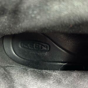 Keywords: KEEN shoes, women's wedge shoes, black leather wedges, stylish wedge design, lace-up wedges, durable rubber sole, mid heel wedges, pre-owned women's shoes, KEEN logo, comfortable wedges, women's size 8.5 shoes, UK size 6 wedges, EU size 39 shoes, leather upper material, rubber outsole wedges.