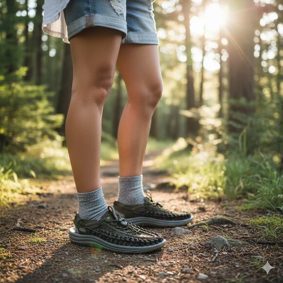Featuring a lightweight two-cord design with a plastic bungee cord and lace-lock toggle for a secure fit, the KEEN® Uneek O3 shoes are designed for outdoor adventures. The nylon upper of these sneakers features a PFAS-free, DWR finish that keeps your feet dry. These sandal sneakers feature a shock-absorbing foam insole with arch support that offers all-day comfort. The breathable nylon lining keeps your feet cool and comfortable. Gear up for a comfortable day out wearing these lace-up sneakers.