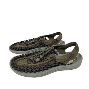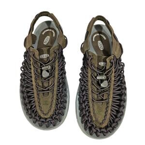 KEEN Womens Green Uneek Dark Olive Leather Sandals