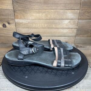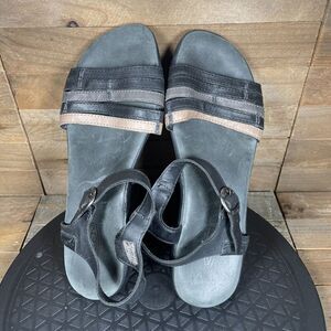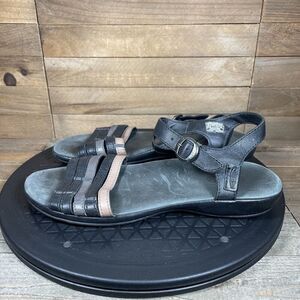 KEEN Womens Size 7 Emerald City Black Leather Ankle Strap Flat Sandals Buckle.