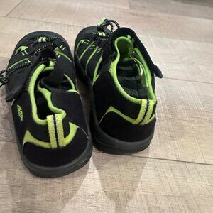 KEEN YOUTH SIZE 5 GREEN BLACK CLOSED TOE SHOES NWOT