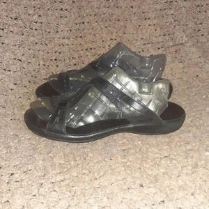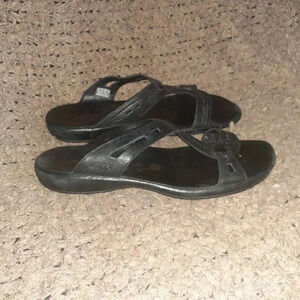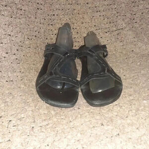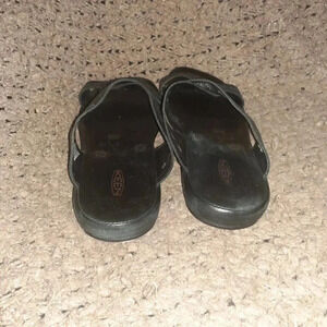 KEEN-Black Leather Sandals-Cut-Out-5488-Mini Wedge-Sz 10-Excellent