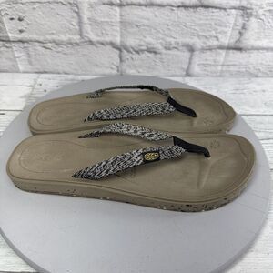 KEEN HARVEST BLACK Women Size 10 WHITE NYLON RECYCLED TOE POST SLIDE SANDALS
