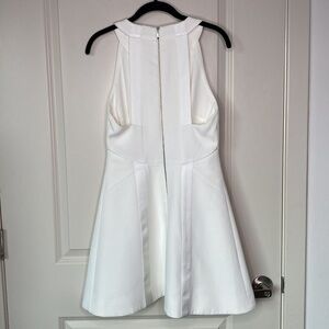 Fully lined. Very well made dress. A line mini dress with exposed back zipper. Sleeveless.