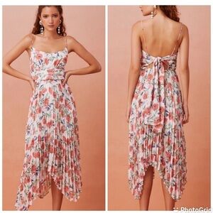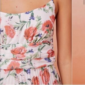 – Invisible zip with hook and eye in skirt and functional tie back - Partial lining - Soft, lightweight georgette - Fit and flare - Features; - Strap adjusters - Pleated skirt - Tie back - Woven