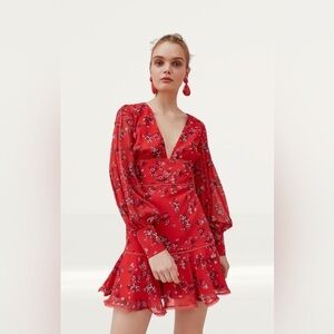 KEEPSAKE THE LABEL HEART AND SOUL FLORAL RUFFLE LONG SLEEVE DRESS