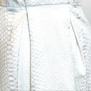 Criss cross back, hidden back zipper, textured snakeskin fabric, lined. Has been dry cleaned.