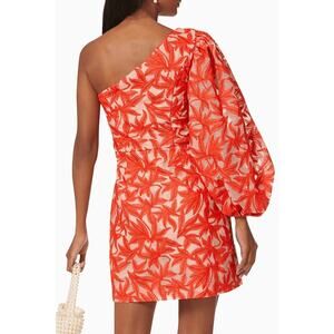 Vivid colour and modern lines lend statement-making allure to Keepsake's Parallel dress. Tailored for a body-hugging fit, this mini is given a show-stopping finish with an asymmetrical neckline, single puffed sleeve and bold leafy embroidery throughout.