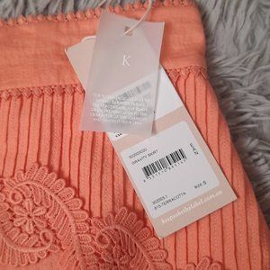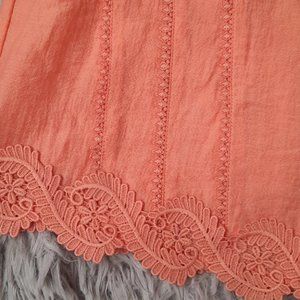 Pinky orange with scalloped hemline. Gravity mini skirt