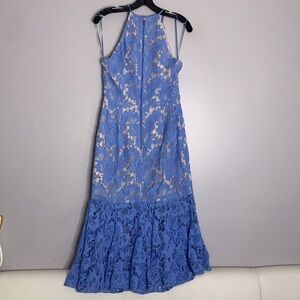 KEEPSAKE The Label sky blue lace trumpet dress midi medium women cocktail