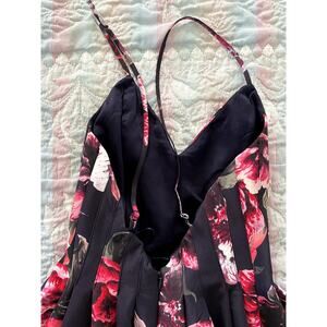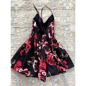 Style: Spaghetti Strap Dress, Mini Dress, Floral Dress, Black and Red Dress, Black Mini Dress, Vneck Backless , Black and Red Dress, Short Dress