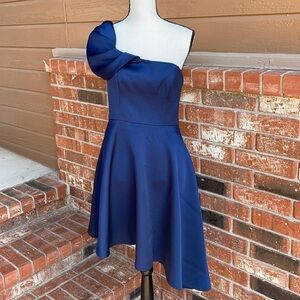 KEEPSAKE the Label Too Late Navy Asymmetrical Mini Dress