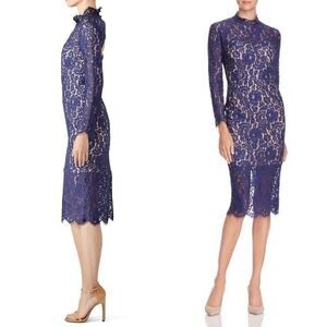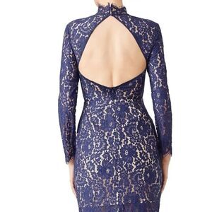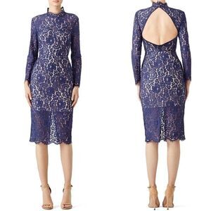 KEEPSAKE the Label Navy Blue Momento Lace Dress Mock Neck Backless Medium