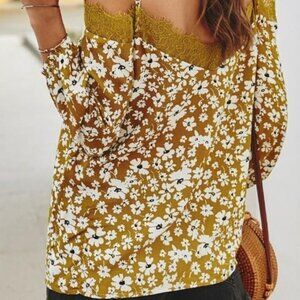 KEILY Yellow Floral Print Off-the-Shoulder blouse top Size XL NWT