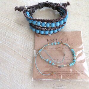 KELITCH Turquoise Mix Beads 2 Bracelets Handmade 1 New 1 Used