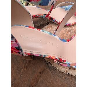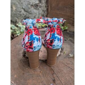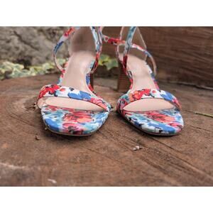 KELLY & KATIE Fabric Floral Print Strappy Open Toe Chunky 3" heels Sz 8.5 M