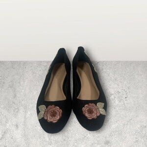 KELLY & KATIE Size 7.5 Embroidered flower slip on 3/4" heels Never worn Fabric